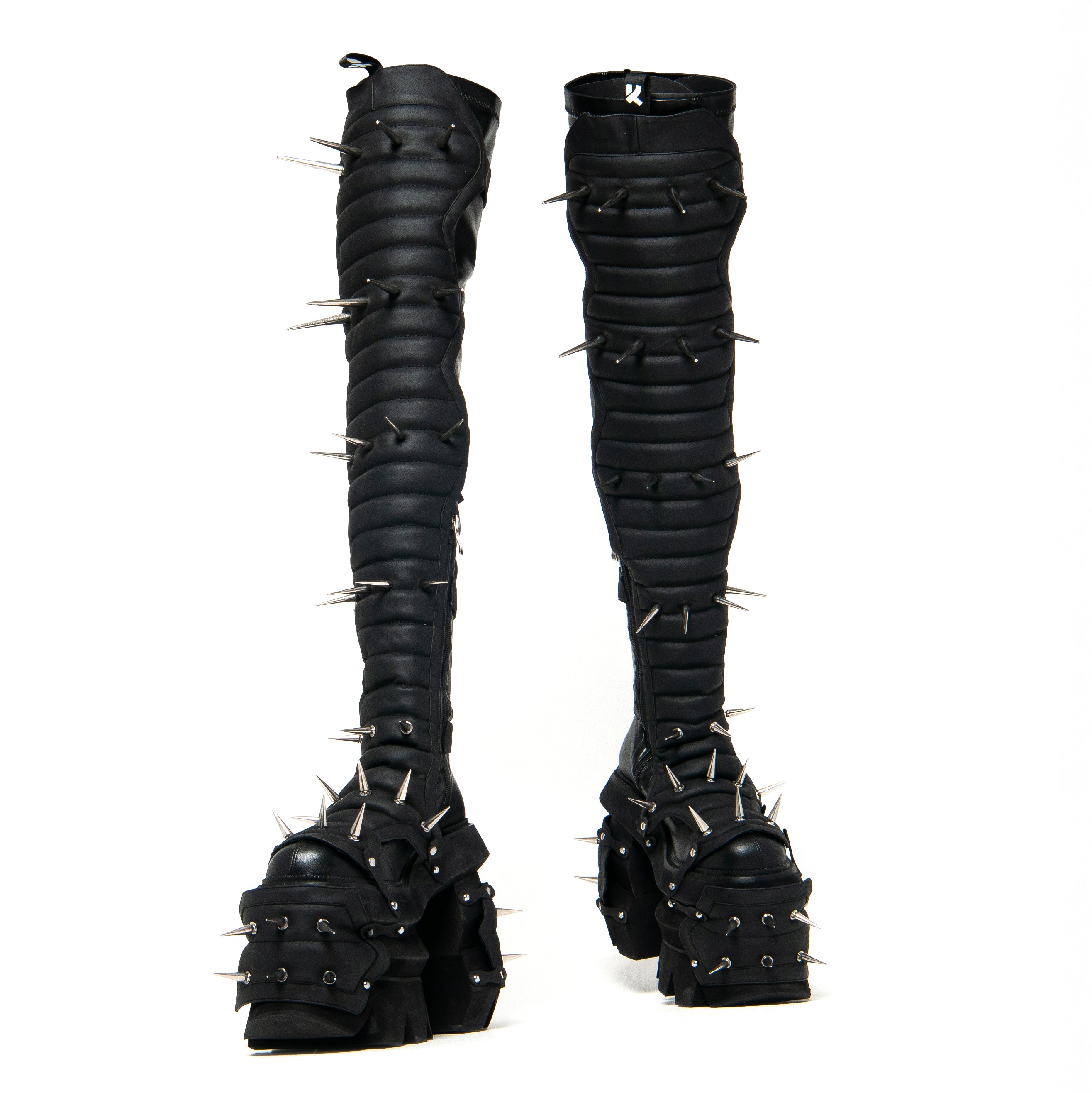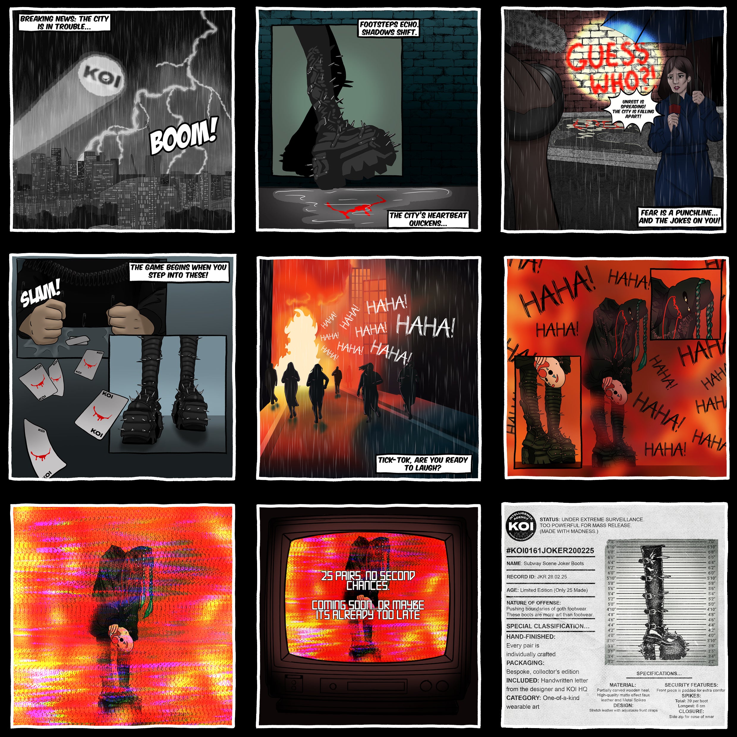 For KOI, this is what happened, it was an explosion of rawness, this boot is a deviant tinge of KOI, it's the answer to the question, what happens if we go too far.. Well this! A limited edition style. The heel is custom wood moulded, the upper was all hand made by artisans, and if you do decide to purchase, the box will surely set the tone!