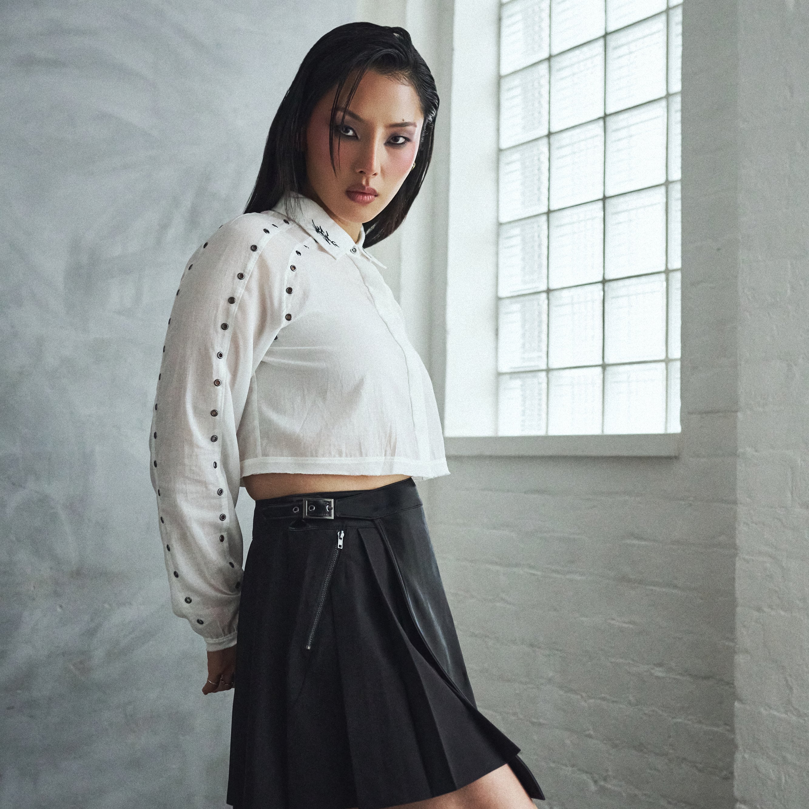 Wisp Cropped Long-Sleeve Shirt - White