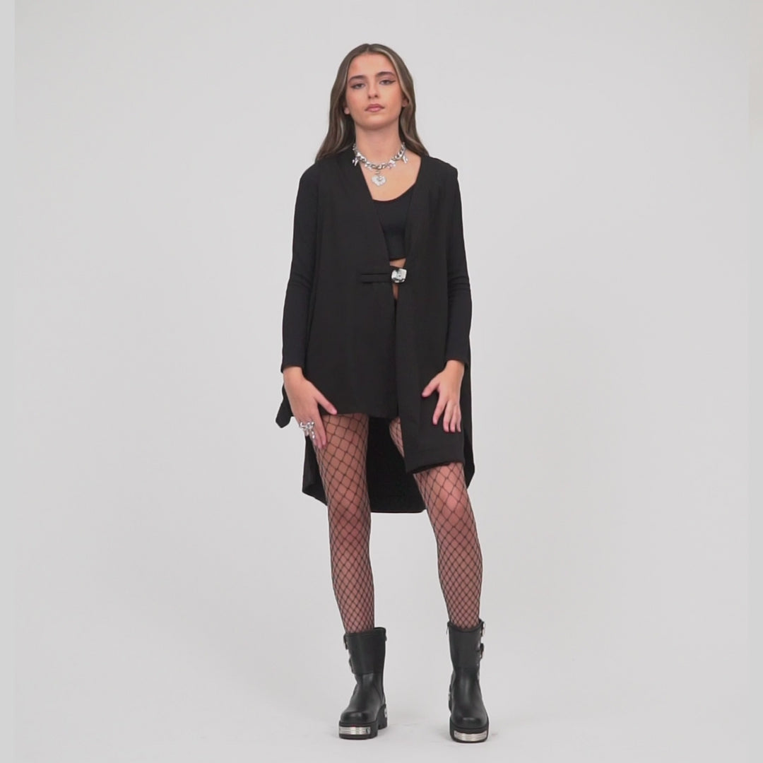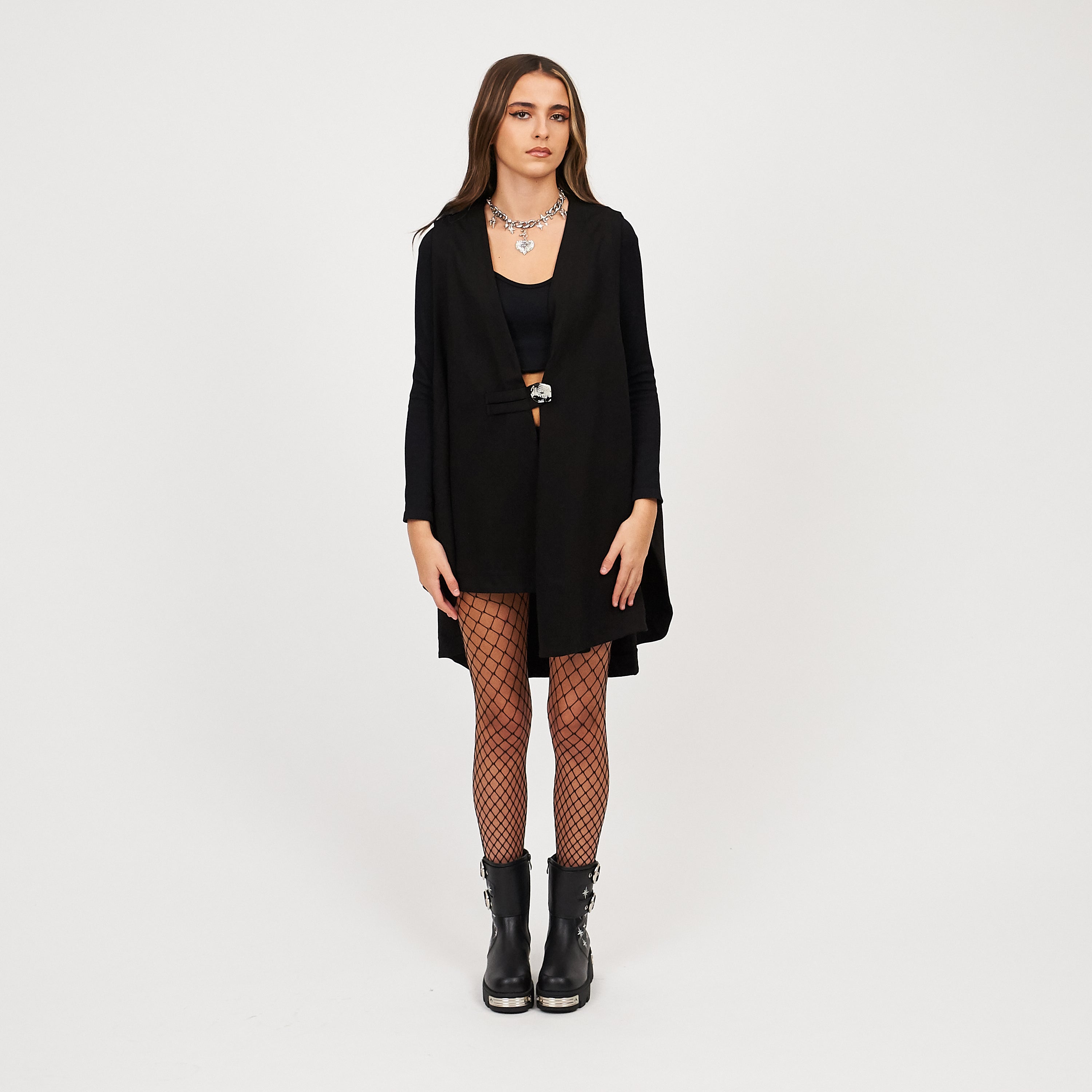 The Cacophony Dress Jacket blurs the lines between layering and statement dressing. With its asymmetric drape and fluid tailoring, this versatile piece moves with you—flowing from daywear to dark evenings without missing a beat.