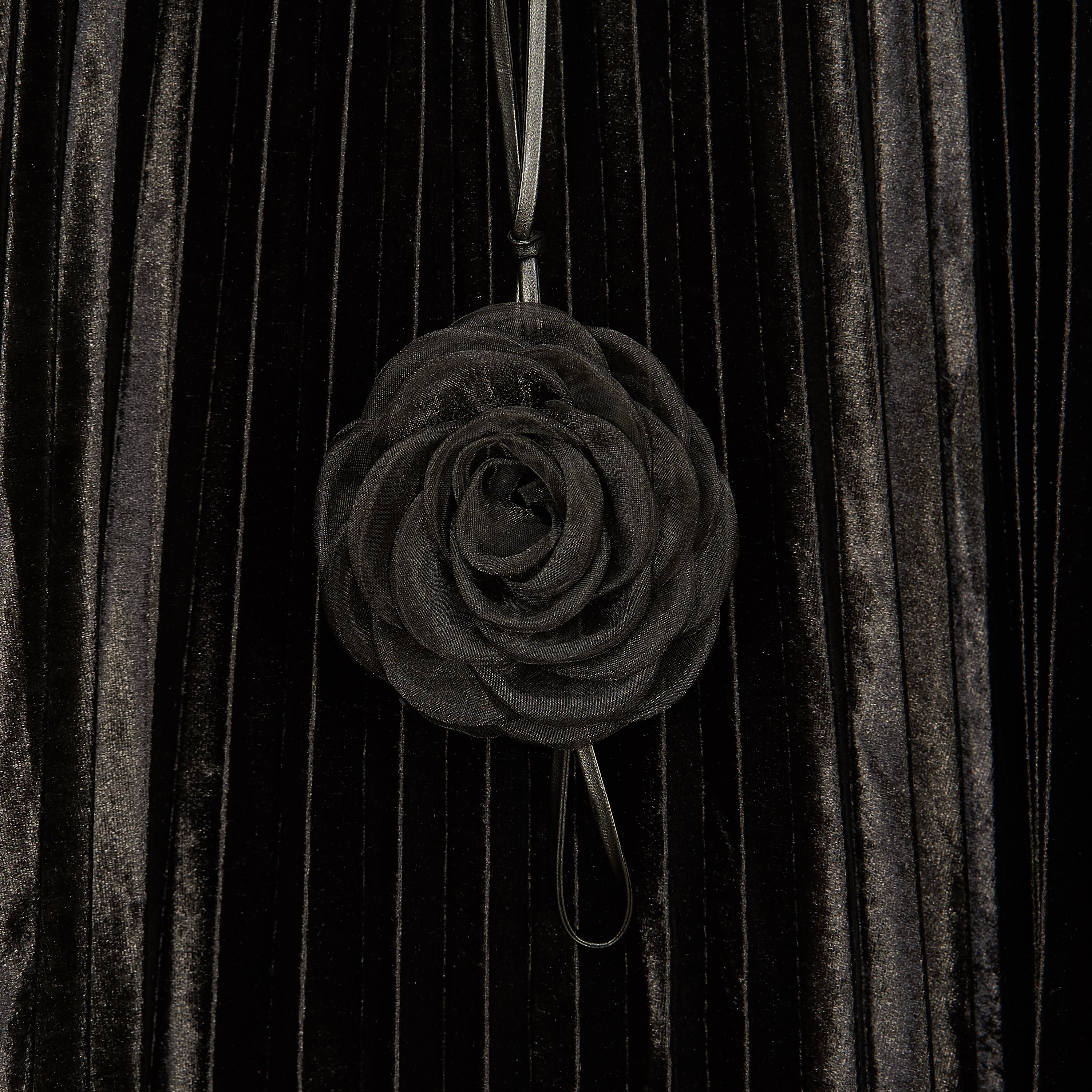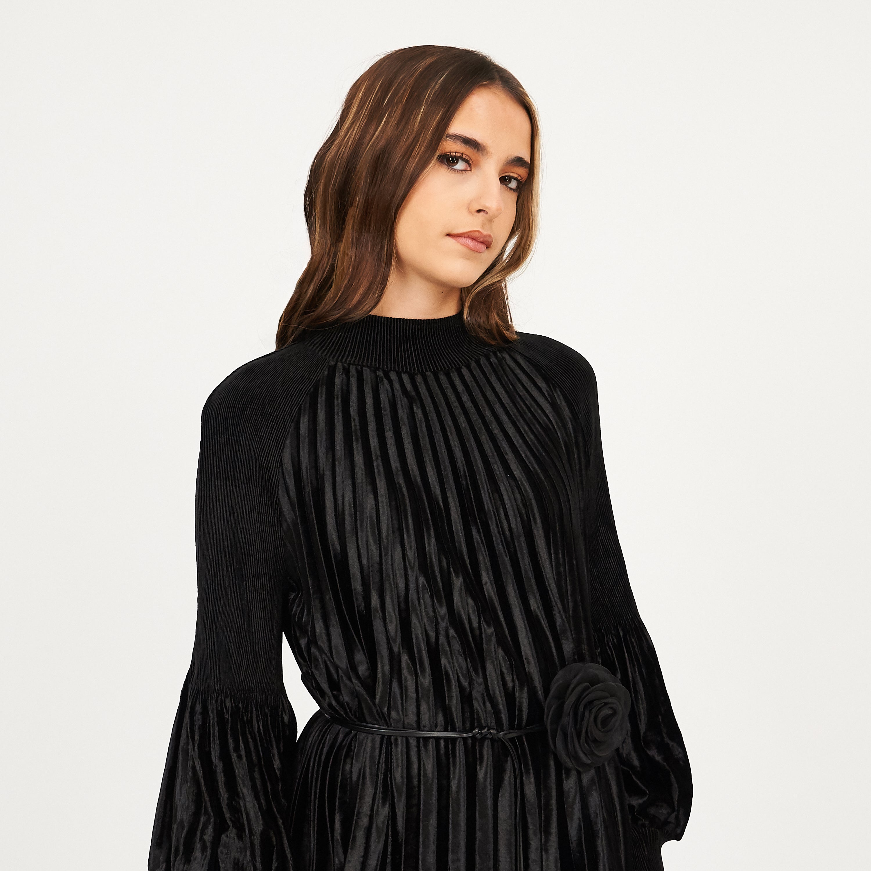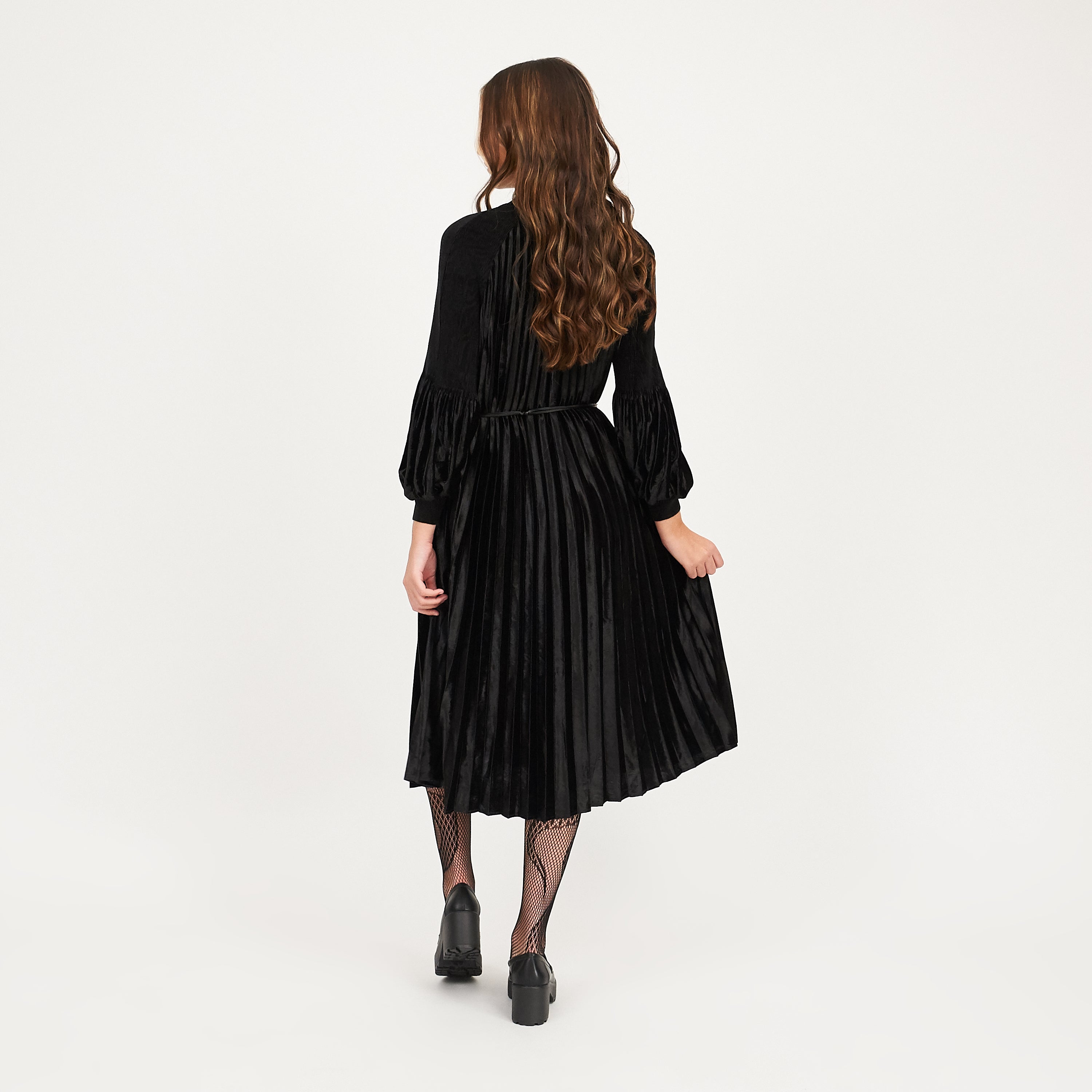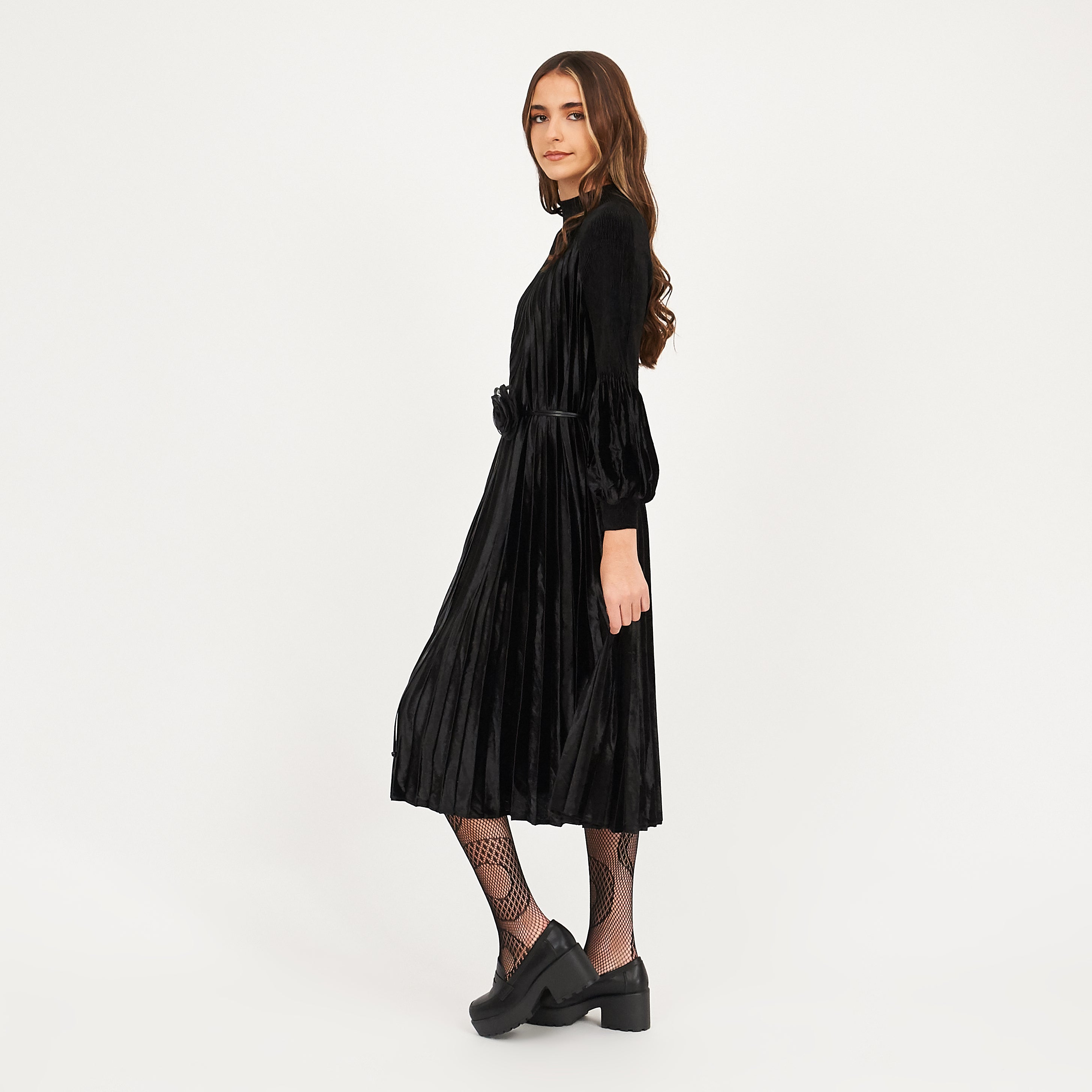 Bespoke Penumbra Black Pleated Midi Dress- One Size