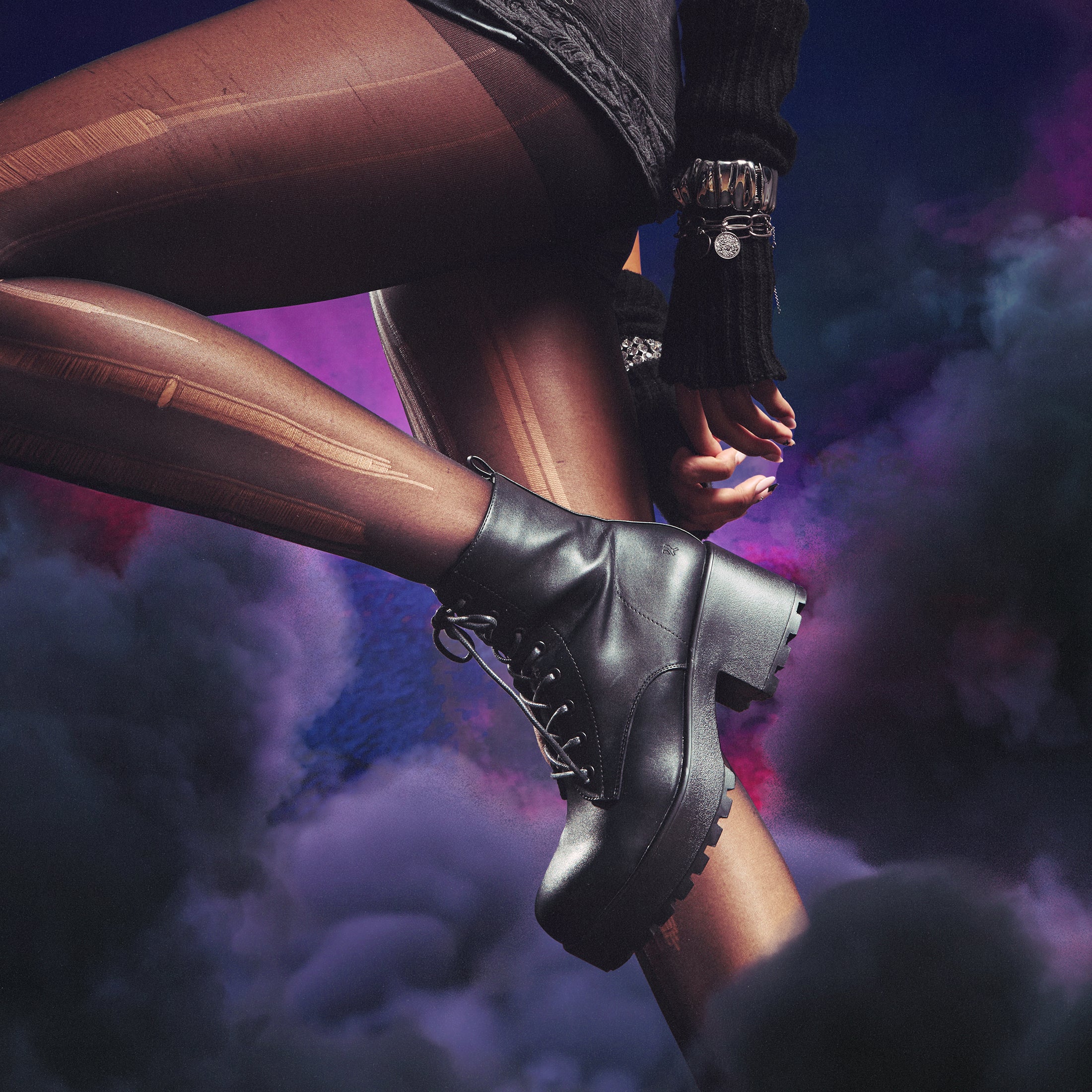 GIN Platform Military Boots - Platform Ankle Boots -  Lace up - Chunky Boots - Black - Model View - KOI Footwear
