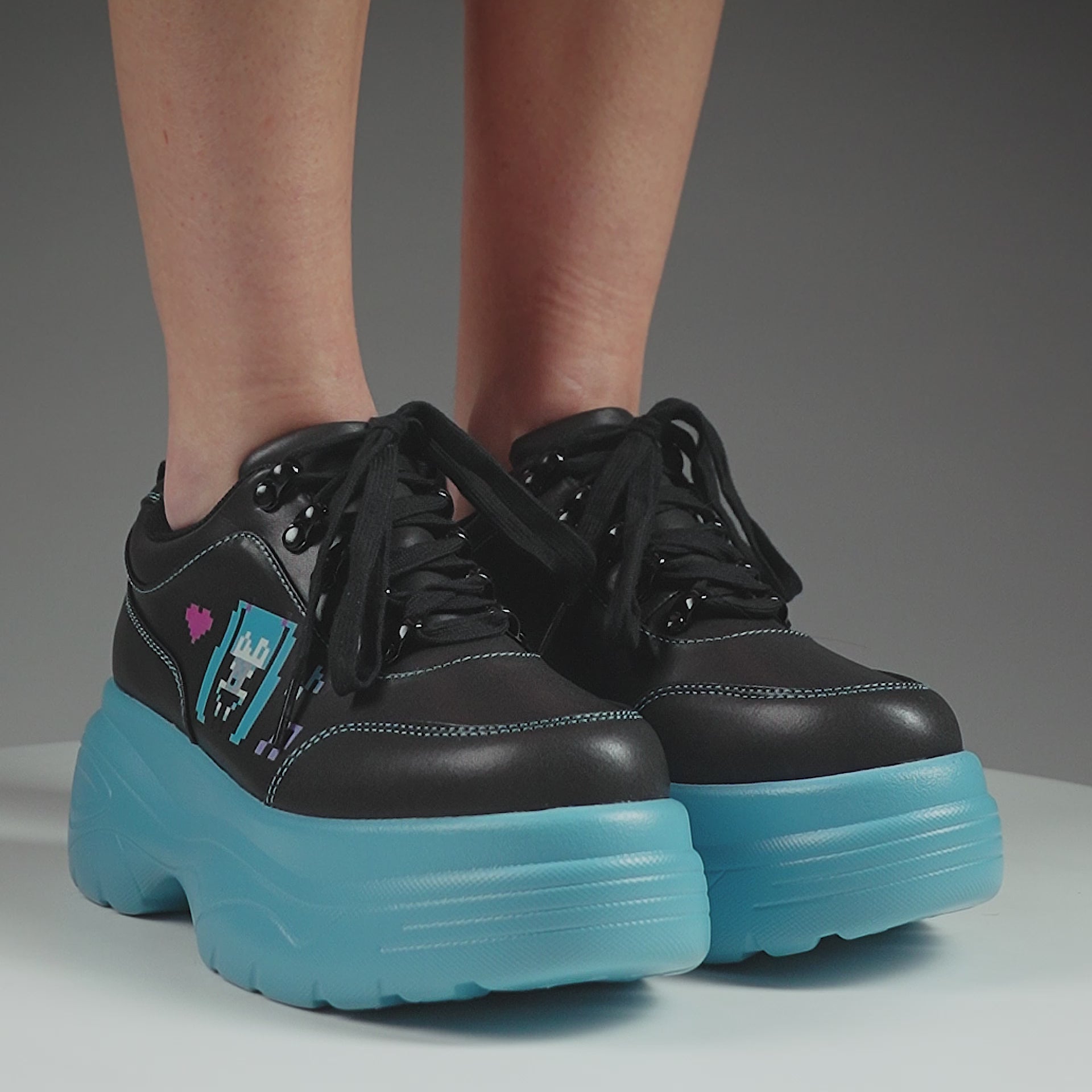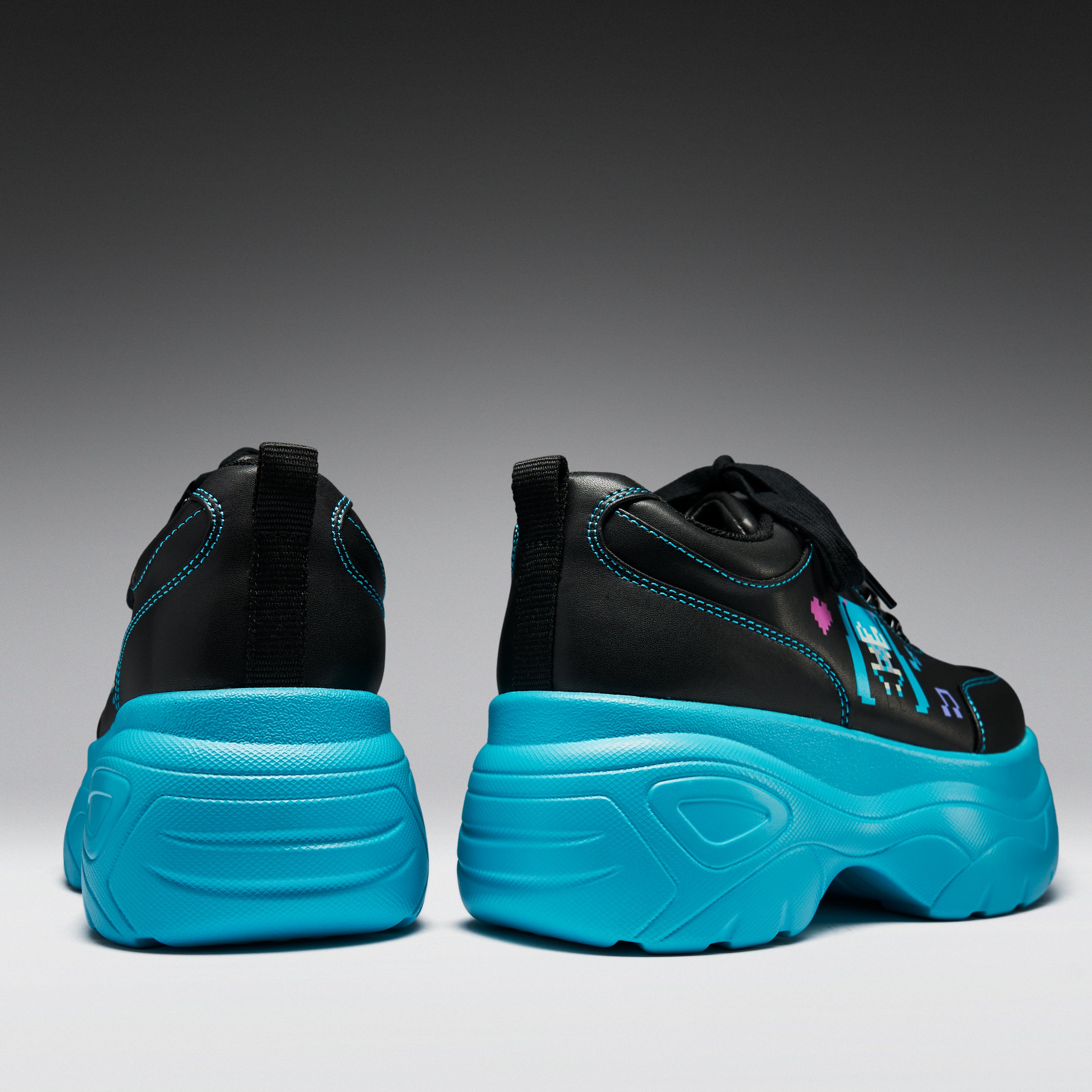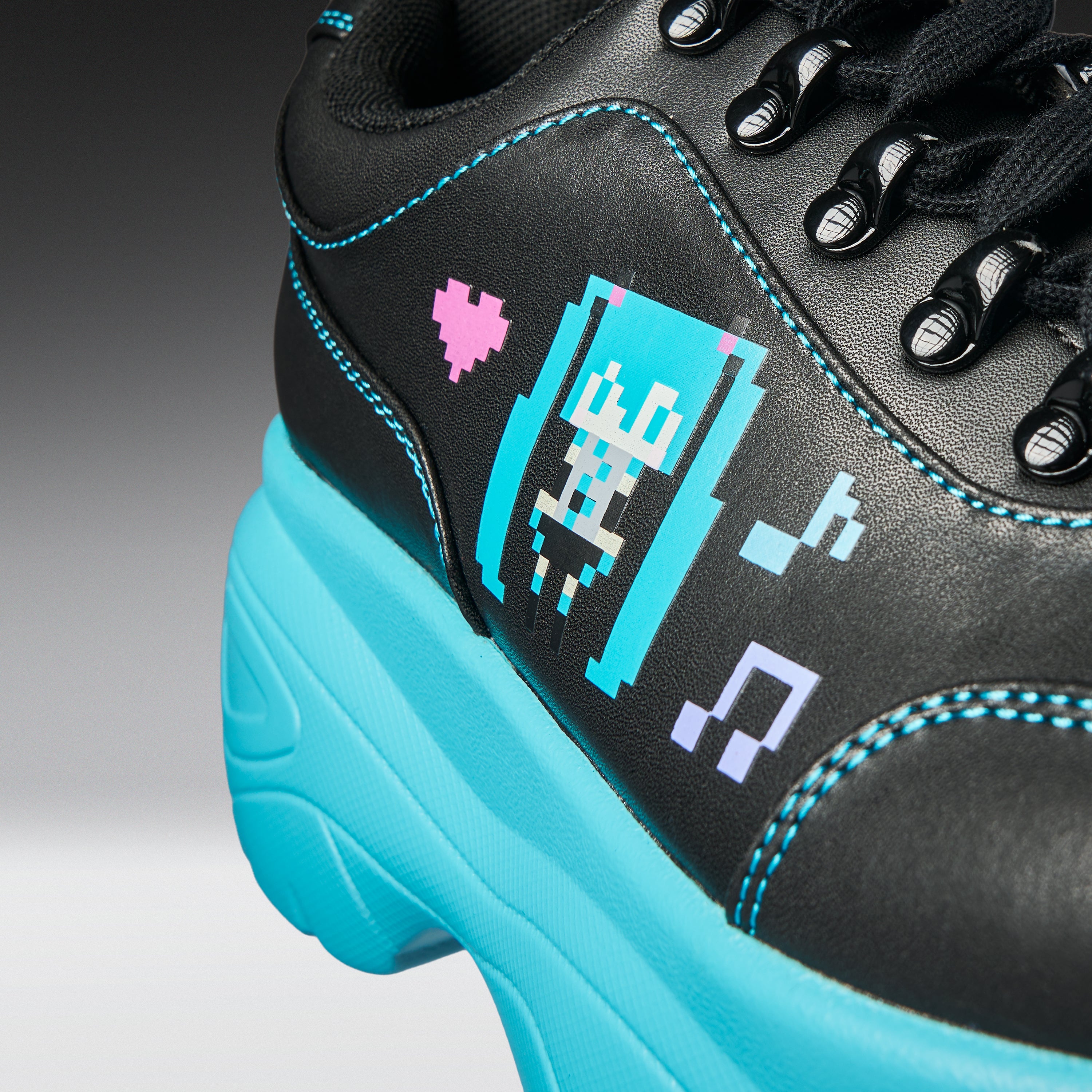 Pixel energy, stadium height. The Virtual Diva takes our signature platform sole and codes it in pure Miku teal, ready to lift every street into concert mode.
