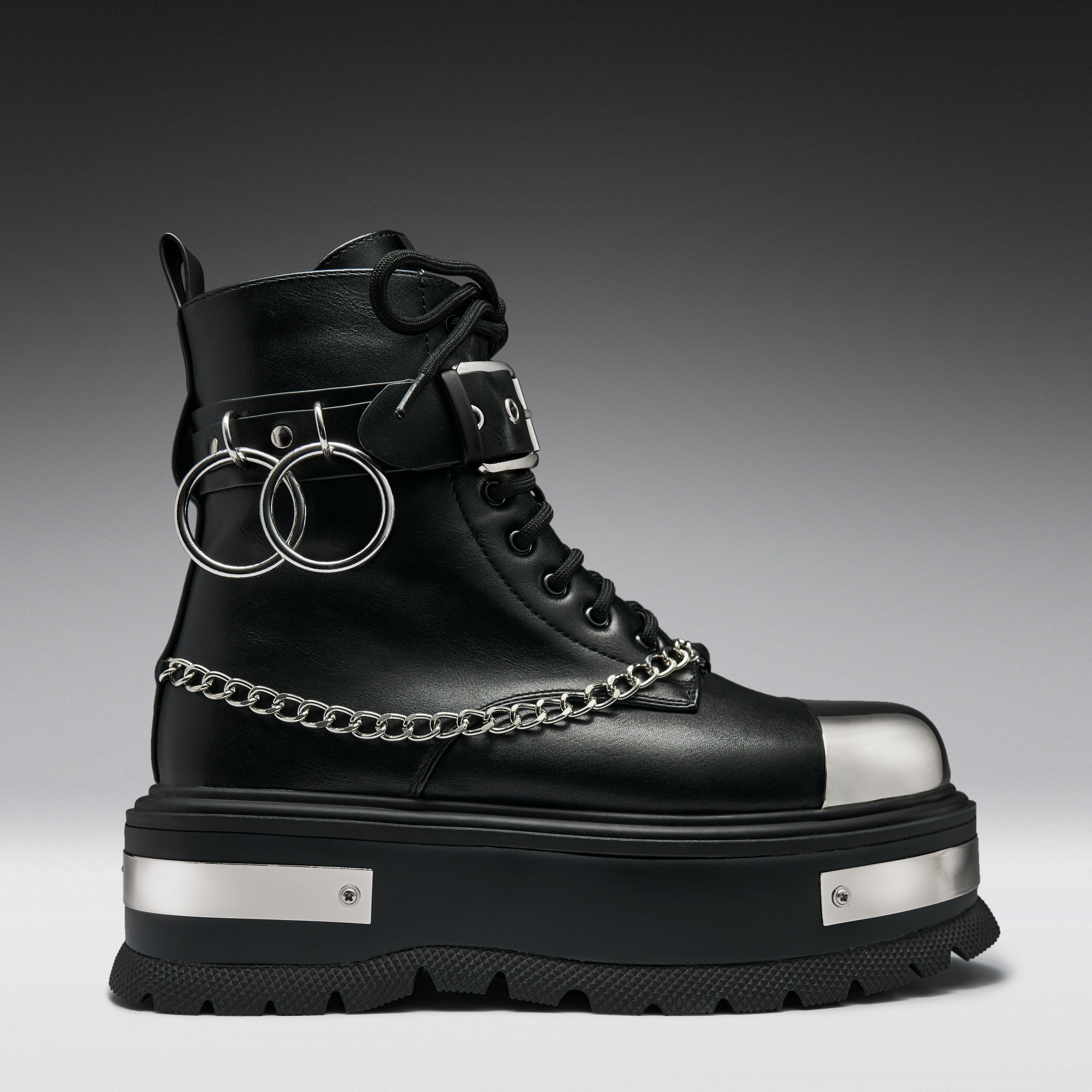 Discover an eclectic range of styles adorned with bold hardware, including men's platform boots with chains and metal toes, men’s chunky trainers with spikes and military boots with oversized buckles. Our designs fearlessly embrace platforms and grunge-inspired aesthetics, pushing the boundaries of conventional fashion. Whether you're drawn to classic military vibes, the timeless charm of Chelsea boots, or the rugged appeal of steel toe platform boots, our collection caters to a diverse taste.