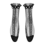 Pearls, frills, and midnight lace. These aren’t just socks—they’re the final touch your Mary Janes have been waiting for. Sheer drama with a gothic twist, they’re here to level up your shoe game from sweet to spellbinding.