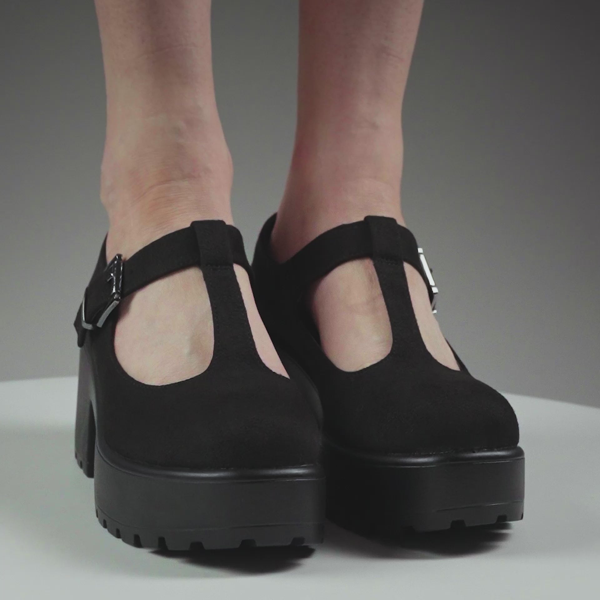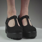 These Black Suede T-Bar Chunky Platform Mary Janes are made from a velvety smooth faux suede offering a sleek matte finish. The insole is padded throughout, matched with PU lining make these a pair you can wear comfortably all day.