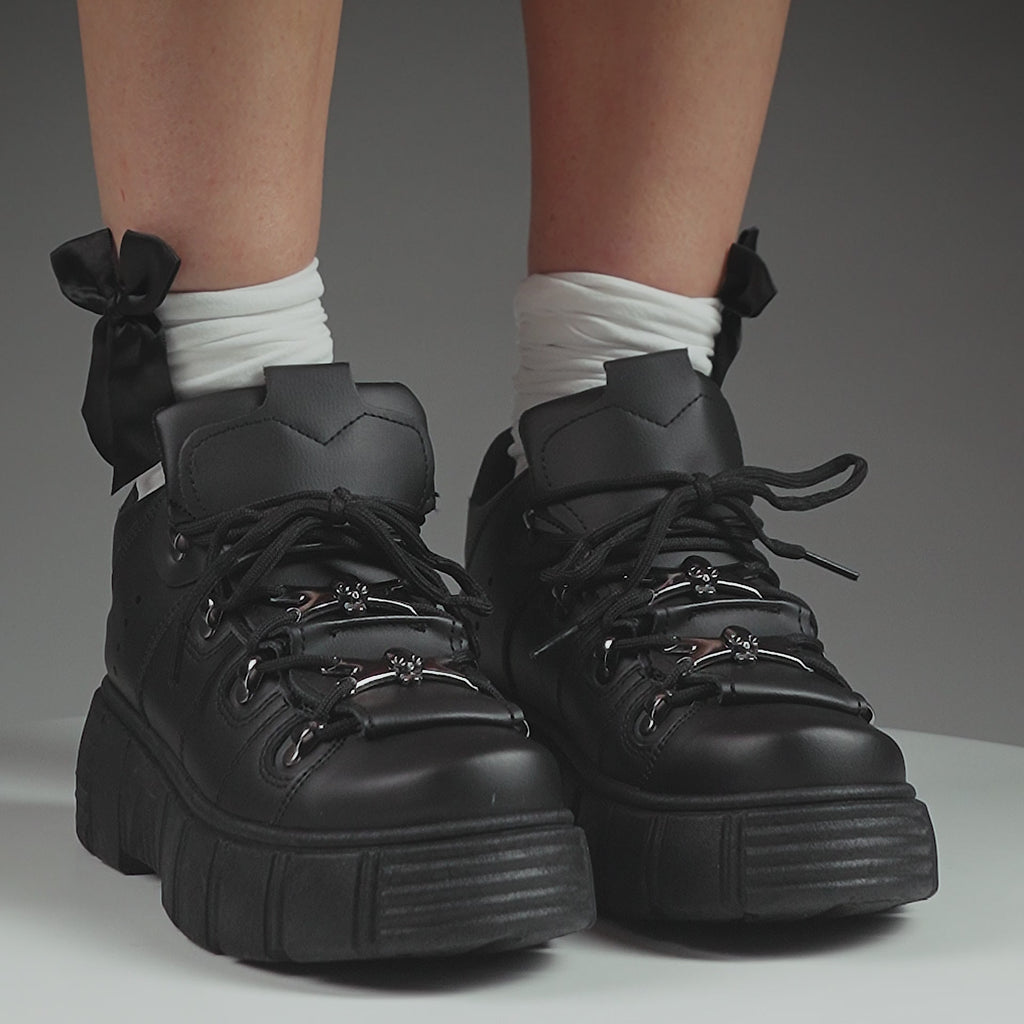 Love goth-inspired tough black sneakers? We’d also recommend our wider selection of vegan alternative trainers, ink-black rugged goth sneakers and retro-themed 90s trainers to complete your collection. You’ll find full sizing information, shipping and returns policies through our product pages, along with care instructions to keep your sneakers in great shape.