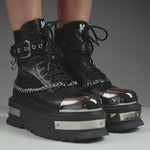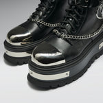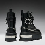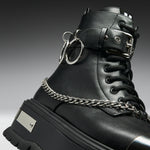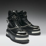 On the spectrum of 'hardcoreness' The Borin Boots sit fairly high up there. The platform is sturdy and durable, the metal is solid and polished, the upper material was derived from the military, you will sense this once you feel how thick it is! This is a boot that has touches of detail which stand out to the keen observer. The Borin's themselves do not define who you are, it is merely a catalyst for expression. The Borin knows who you are, and allows the true you to come out, and shine, just like the toecap.