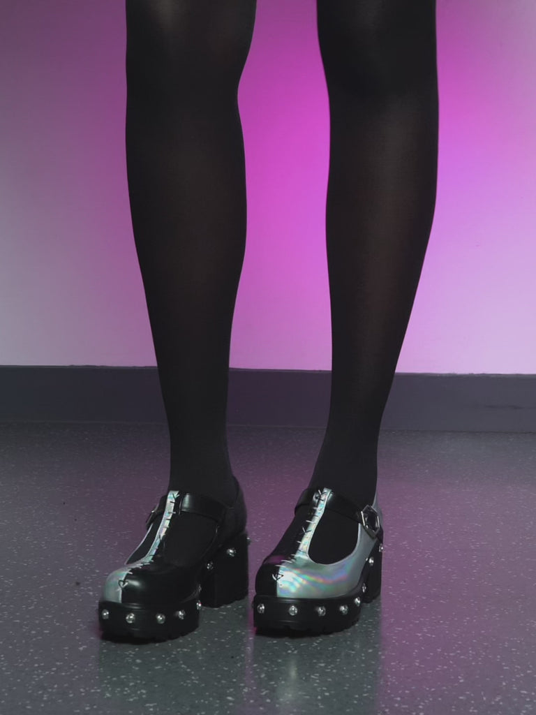 Electric energy in shoe form. These holographic Mary Janes shimmer with silver iridescence, complete with stitched detailing and a bolt of youthful charm. Inspired by Frankie’s lightning powers, they sparkle with every step, making them the perfect pair for a 15 day old ghoul discovering the world one corridor at a time. Trusting, kind and full of excitement, just like Frankie themself.