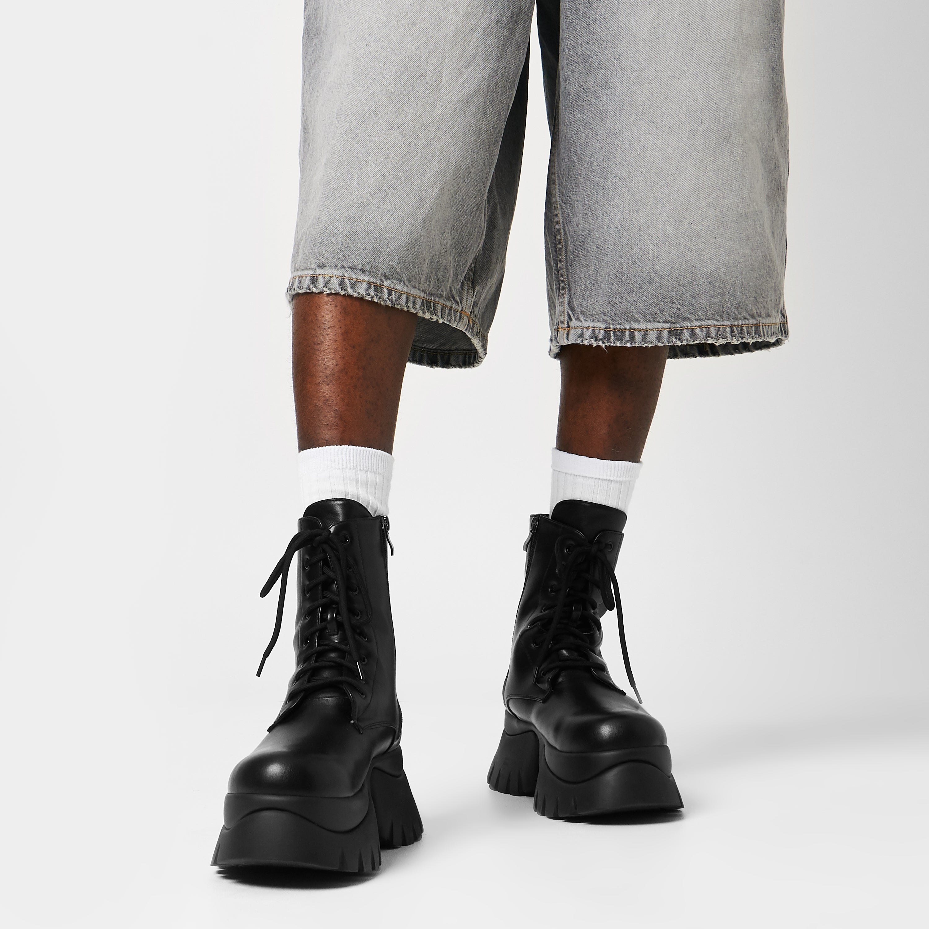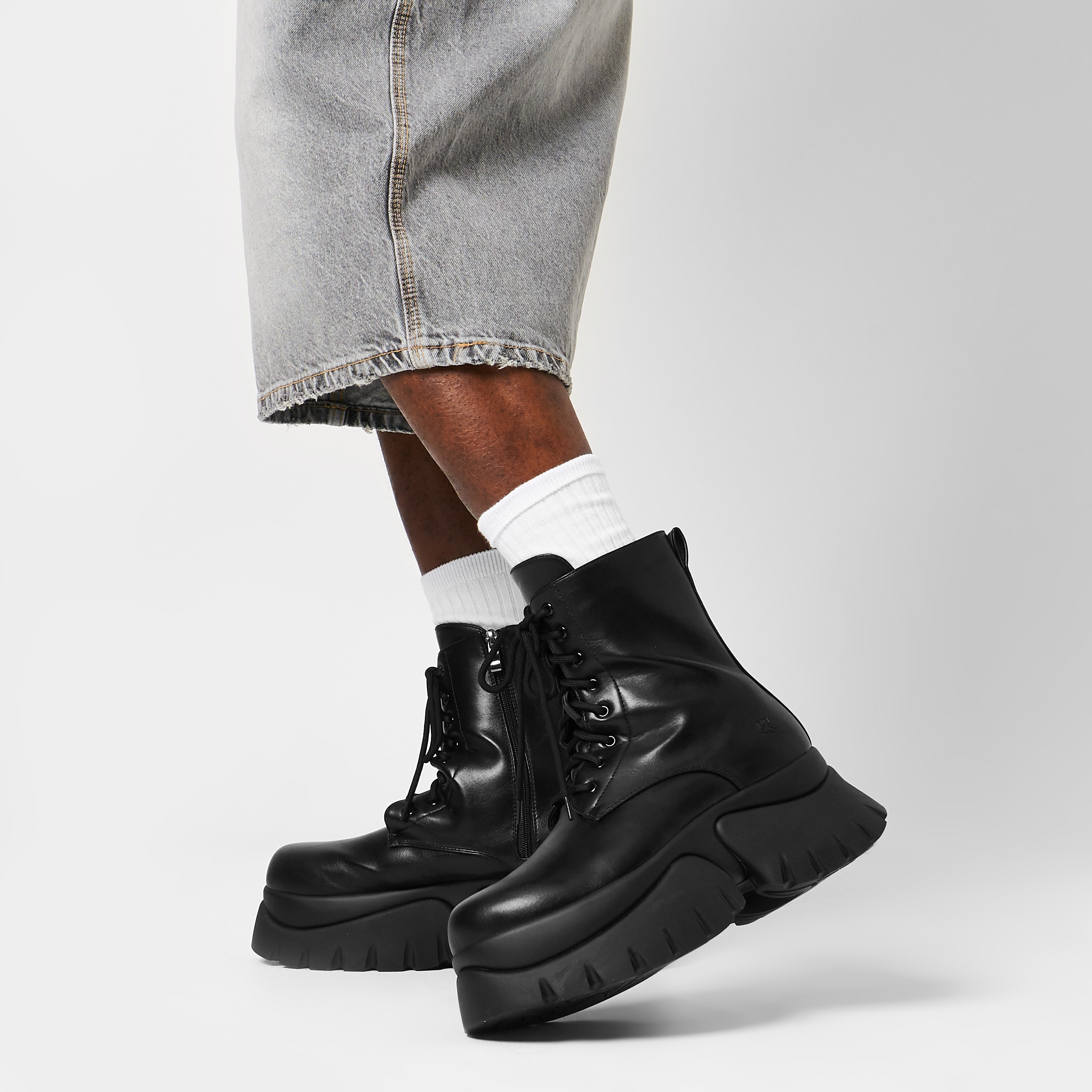 The upper is made from thick, supple faux leather with a classic military boot vibe. We made sure every part of this boot is built with purpose, from the warm fabric lining to the cushioned insole and curvy silhouette. No need to break these in, they’re comfortable right from the first step.