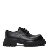 The corrupter gives off all kinds of auras. An amalgamation of smart, punk, preppy and goth elements, these lace up chunky shoes come in all-black vegan leather and have a square toe add a twist onto an ultra-classic silhouette. These chunky shoes for men are here to disrupt the peace, take the normal and corrupt everything you once thought...taking smart-casual to a new level.