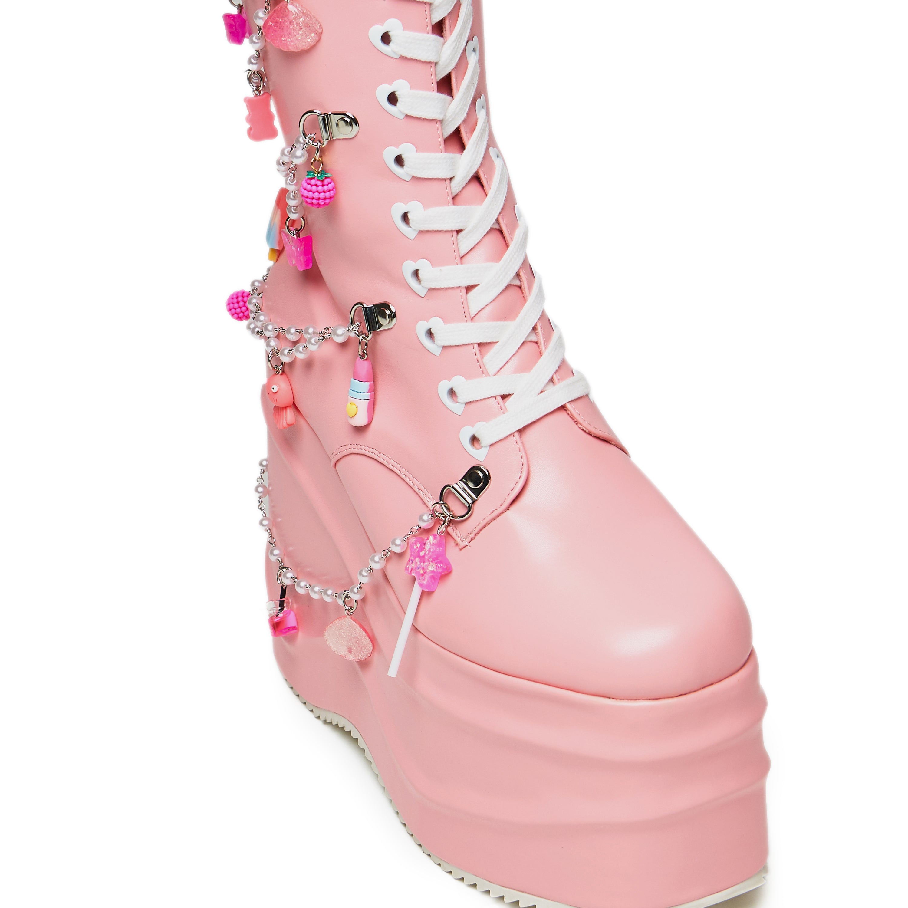Designed for Decora days and dopamine dressing, The Dreamscape Charms Long Boots are an overload of joy — all wrapped up in pastel pink.