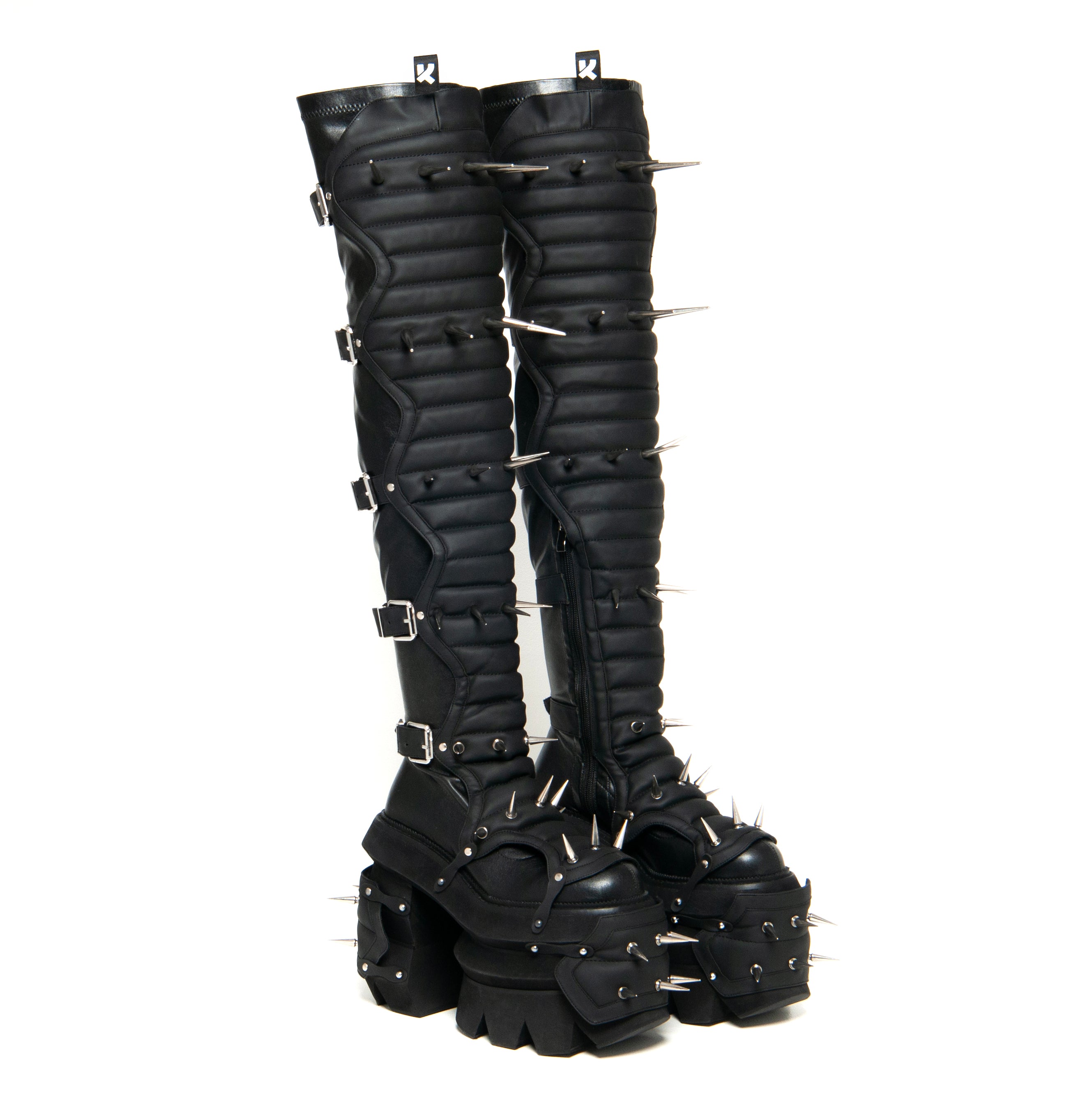 For KOI, this is what happened, it was an explosion of rawness, this boot is a deviant tinge of KOI, it's the answer to the question, what happens if we go too far.. Well this! A limited edition style. The heel is custom wood moulded, the upper was all hand made by artisans, and if you do decide to purchase, the box will surely set the tone!